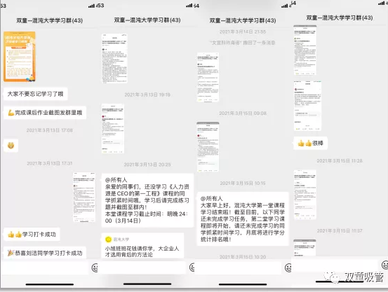 2021年4月1日,“雙童”攜手混沌大學義烏中心,共同創建了員工學習會新形式讓150位行(háng)政員工全部上(shàng)大學。作為團(tuán)報(bào)企業(yè),混沌義烏(wū)會組建線上學習群,每月(yuè)會在群內發布學習任務(wù),督促同學們學習打卡,並和企業學習領導小組負責人共同評選(xuǎn)出優(yōu)秀作業,並給予學分獎勵。