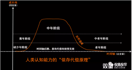 從上述模型中,我們能夠看到人類從幼少年階段開始,經過青年階段,到達中年階段,這期間的成長過程中,人類的(de)認知水平隨著年齡增長而不斷提升,並在中年階段到達巔峰期。但是,隨著年齡(líng)的不(bú)斷增長,人類逐步進入到中老年階段和老(lǎo)年(nián)階段,在這個過程中,人類的(de)認知能(néng)力開始自(zì)然(rán)遞減,最終接近(jìn)幼(yòu)少年時期(qī)的認知能力。由此,我們可以看出:對於個體生命而言,人到中年,身體老化,思想僵化、思維固化等這(zhè)些現象其實就是典型的生命“熵增”的結果。簡單來說(shuō):“熵增”的表現是功能減弱直到逐漸喪失,而“熵減”表現則是功能增強。