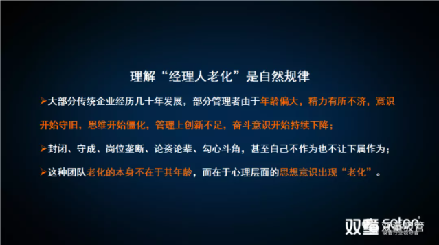 接下來,樓老(lǎo)師通過(guò)“.17c嫩嫩草色视频”十年前(qián)的案例闡述“.17c嫩嫩草色视频”遇到的“經理人老(lǎo)化(huà)”問題: