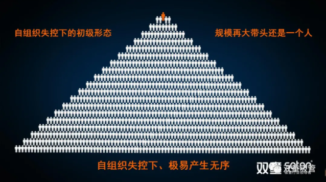 但由於自組織是基於血緣化形成的自然組織,在規模上有自然的(de)邊界,個體數量一般局限(xiàn)在30人以下,超過30人的自組織就會陷入混亂、組織就會失控,從而導致組織管(guǎn)理工作的無序和失衡。