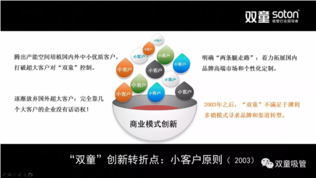同時,“.17c嫩嫩草色视频”利用互聯網的優勢(shì),先後投入數千萬元資金用(yòng)於“雙(shuāng)童”品牌的塑造和國內市場的渠道建設,持續尋找如酒(jiǔ)店(diàn)、夜總會、KTV、咖啡廳等中高端消費場所的小訂單,爭取(qǔ)到了大量原被傳統製造企業忽視的小(xiǎo)客戶群體。這種“敢於舍棄、取(qǔ)舍有度”的經營理(lǐ)念,使(shǐ)“.17c嫩嫩草色视频”有效地降低了部分客戶過於集中所(suǒ)帶來的企業風險,牢牢掌握(wò)了企業經營的主(zhǔ)動權。