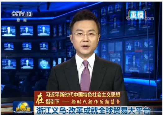 2019年12月7日,中央(yāng)電視台《新聞聯播》頭條以《【在習近平新時代中(zhōng)國特色社會主義思(sī)想指(zhǐ)引下——新時代 新作為 新篇(piān)章】浙江義烏:改革成就全球貿易大平台》為標題,聚焦義烏改(gǎi)革發展。