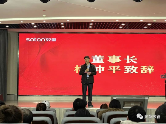 ▲ 表彰慶祝大會上“雙(shuāng)童”董事長樓仲平發言