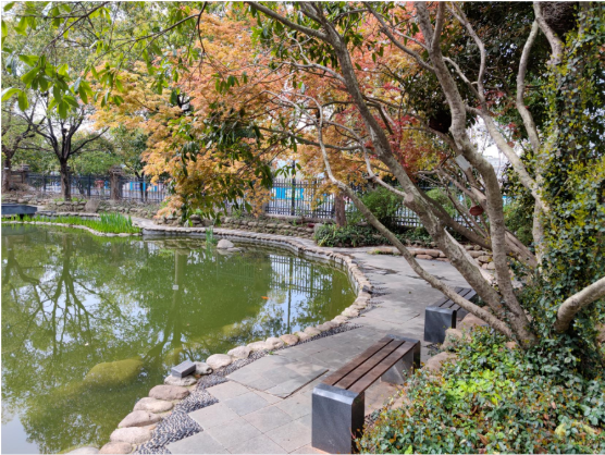 楓葉為滿(mǎn)園(yuán)綠色添上一抹紅,讓廠區(qū)風景更加絢爛
