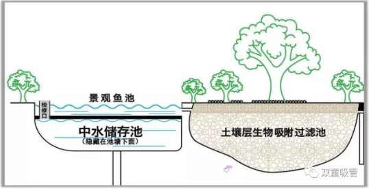 (上層是景觀魚池,下層(céng)是中(zhōng)水儲存池)