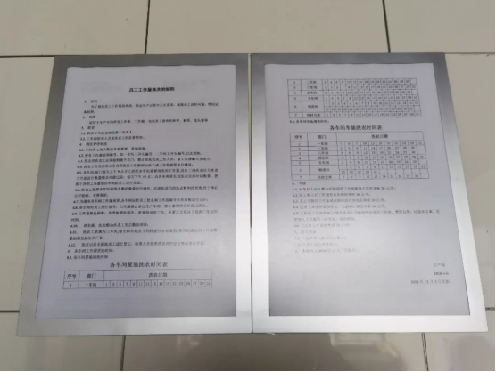 洗衣房貼(tiē)有工作服換洗管理細則說明
