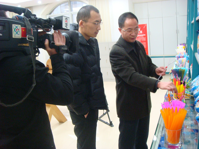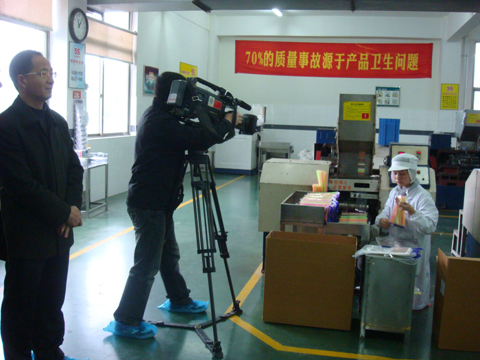上圖:《中國財經報道》欄目組記者到我司吸管生產車間采訪拍報