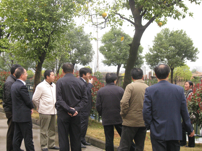 上圖:董事長樓仲平陪同調研組(zǔ)考察公司節能(néng)減排(pái)和循(xún)環經濟(jì)工作(zuò)