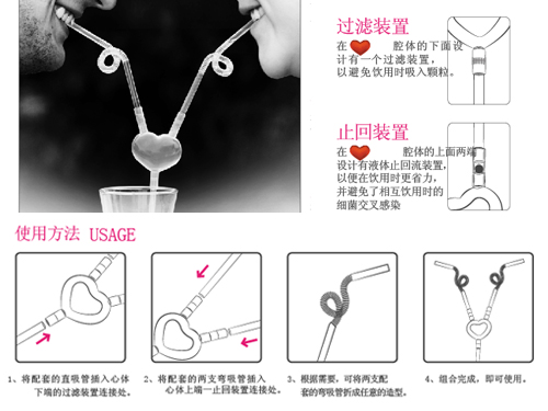 ● 全新設計“水流止回裝置”,解決了傳統愛(ài)心吸管必須同步飲用的尷尬;