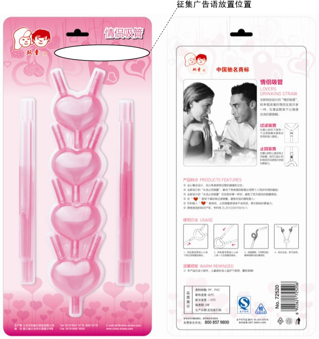 被征集的廣告語將用於我們 “愛心吸管”產品所有包裝(zhuāng)正麵的廣告詞。