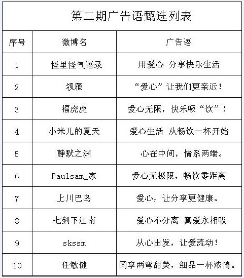 ● 第二期廣告語征集活動:2012.06.11—2012.06.15日,為期5天;