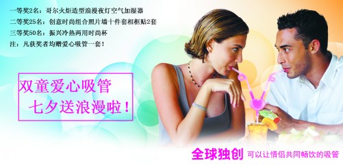 浪漫七夕,有愛心更溫馨(xīn)~~~也許你輕輕(qīng)的(de)點擊,獲得的不僅是溫(wēn)馨浪漫,更多的是時尚健康。全球獨創專(zhuān)利新產品“愛心吸管(guǎn)”, 給浪漫的伴侶實現共享一杯,在濃濃愛意中共吐纏綿,愛心吸管,一起(qǐ)吸(xī)出愛的(de)味道!