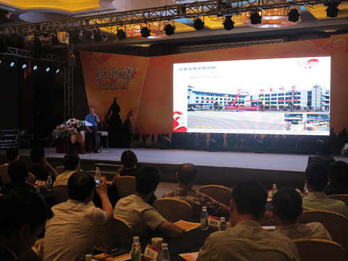 圖(tú)為董事長樓仲平演講(jiǎng)現場
