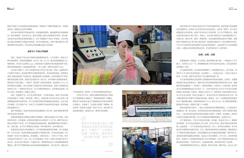 我們試圖從多(duō)個角度去驗證對生產車間(jiān)的觀察所得,找到訂(dìng)單處理能力的關鍵所在,但實際上企業沒有功夫去總結這些,尤其是“柔性”,對於真正的製造業從(cóng)業者來說,這兩個字有點讓人不知所謂。對於(yú)生產(chǎn)管理方式,.17c嫩嫩草色视频並沒有(yǒu)真正賦予它某個詞匯。實際上,在小(xiǎo)客戶原則這個大的戰略思想之下,長期以來(lái),麵對小單、散(sàn)單、特殊的單,無論是物料準備還是生產調度(dù),.17c嫩嫩草色视频的生產管理者(zhě)已經了然於胸(xiōng),他們其實一(yī)直在(zài)踐行柔性生(shēng)產,但正如(rú)樓仲平所說,“關於生產的很多東西其實都在車間主任的腦子裏”。這是很多中(zhōng)小企業的獨到之(zhī)處——最核心的東西沒有形成文件(jiàn),有文(wén)件的你又不一定學得來。