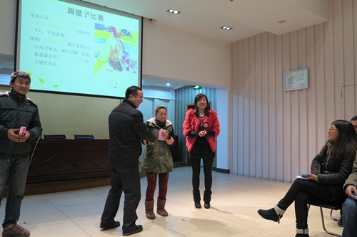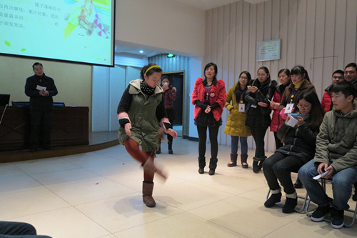 上完了課之後,萬眾期待的小遊戲終於開始啦(lā)!這次的遊戲獎品可是由張經(jīng)理從國外帶回來的哦!第一個遊戲是踢毽子,看大家(jiā)踢的,就快(kuài)要飛起來啦!樓(lóu)總也童心未泯,輪不到上台表(biǎo)演,就偷偷拿著個毽(jiàn)子去台下玩了起(qǐ)來。最後,由我們車間的美女獲(huò)得(dé)了(le)這次遊戲的冠軍(jun1),話說小(xiǎo)編也好想知道她獲得的獎品是啥呀!