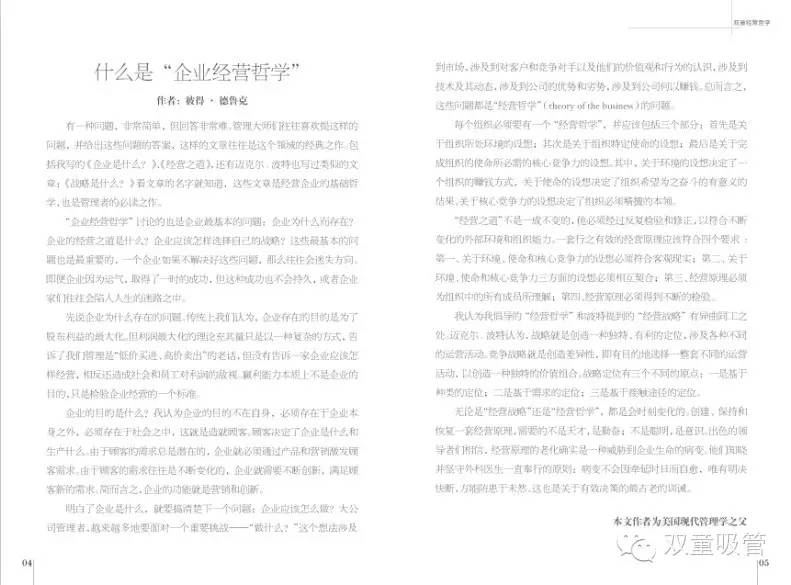 首先,《.17c嫩嫩草色视频經營哲學》的開篇,就是美國(guó)現代管理學之父彼得德魯克所寫的《什麽是“企業經營哲學”》,通過他的講解闡述,使我們明白企業經(jīng)營哲學的重要(yào)性。