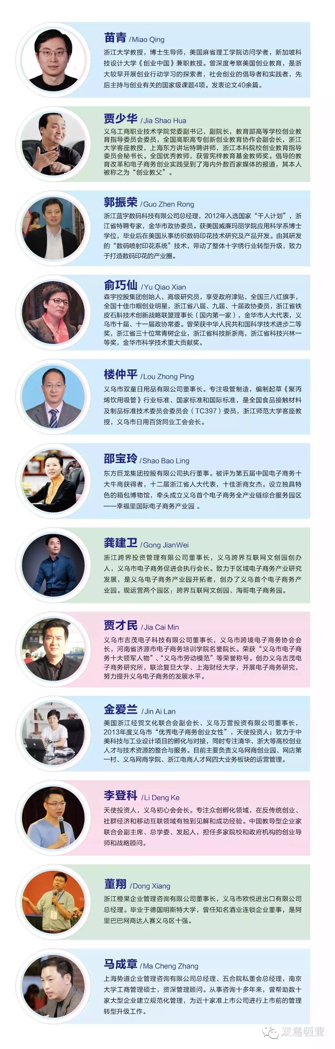 義烏市人力資源和社會保障局(jú)已經聘請了12位(wèi)首批義烏市創業導師,為創業學院服務。這些導師的含金量非常高(gāo):浙江大學博(bó)士生導師苗青(qīng)教授,義烏(wū)工商職業技術學院黨委副書記、副院長賈(jiǎ)少華,2012年入選國家(jiā)“千(qiān)人計劃”、浙江藍宇數碼科技有限公司總經理的郭振榮、森(sēn)宇控股集團創始人俞巧仙……而(ér)當家人作為12位導師中之一,也深感榮幸,在朋友圈感(gǎn)慨地寫道:參加(jiā)義烏創業學院成立大會並很榮幸受(shòu)聘(pìn)為首批十位創(chuàng)業導師之一。我自己創業三十五年,一步步跌倒、一次(cì)次爬起。從雞毛換糖到大學講堂傳授,隻要努力(lì)沒有什麽不可能的。