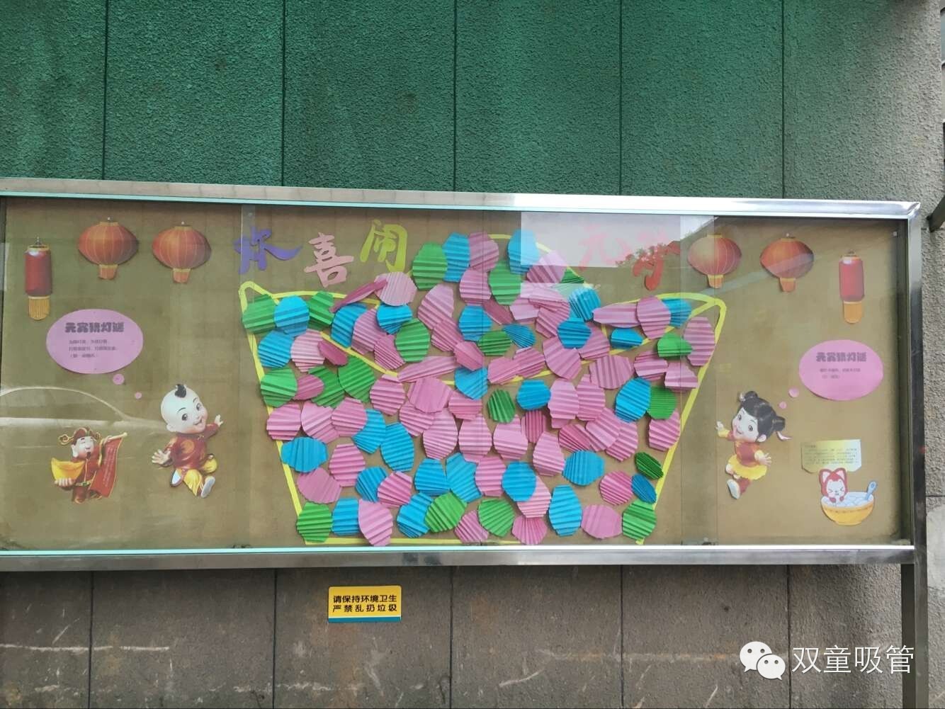 看,我們特地做了一期簡單宣傳欄(lán),設計了一個大元寶,讓大家把折(shé)好的紙燈籠掛上去!(別看這大元寶簡單,妞也是做了一個晚上呢!)每天的中午吃飯時間,我們就在宣傳欄前舉(jǔ)辦元宵活動(dòng),吆喝著(zhe)請過往的員工參與進來!看,效果還不錯吧?截止到(dào)活動(dòng)結束,元寶(bǎo)上麵一共掛了(le)一百多盞的(de)小(xiǎo)燈籠呢!