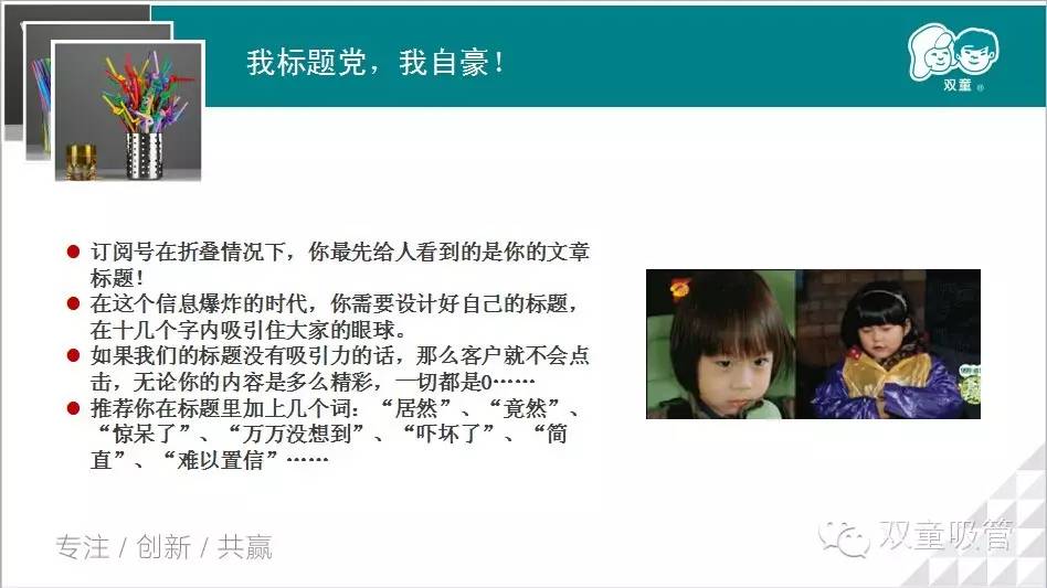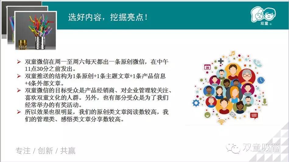 現如(rú)今微信發展如火如(rú)荼,用微信公眾平台作為營銷和品(pǐn)牌推廣工具已是眾大企業和(hé)商家的不二(èr)之選。那(nà)麽,究竟如何才能事半功倍地運營微信公(gōng)眾(zhòng)平台呢?不吹牛的說,吸管妞經常能聽到一些朋友對“.17c嫩嫩草色视频吸管”微信公(gōng)眾平台(tái)的誇讚,說這是義(yì)烏企業界運營得(dé)最好(hǎo)的微信公眾號。那麽(me)這(zhè)次吸管妞就結合了自己在運營“.17c嫩嫩草色视频吸管”微信公(gōng)眾號時所積累的一些經驗,把它們做成PPT分享(xiǎng)給大家,共同分享,共同進步!