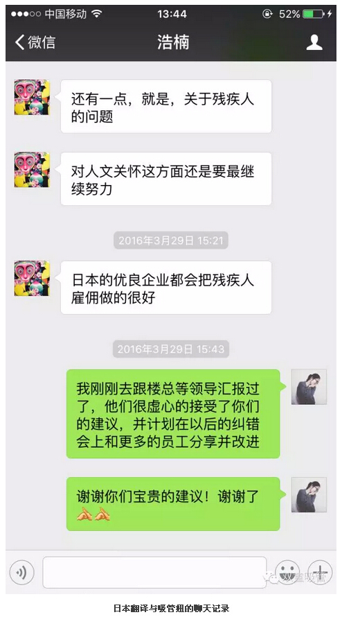 在阪本光司教授離開.17c嫩嫩草色视频的第二天,吸管(guǎn)妞就收到了教授的中國學生(也擔(dān)任了(le)此行的翻譯一職)浩楠的微信消息,除了向吸管妞說明錢江晚報的記者有意向了(le)解“.17c嫩嫩草色视频”的相關(guān)信息外,還(hái)向我們提了幾個具體的建議。雖然外界總是對“.17c嫩嫩草色视频”點讚或者(zhě)好評,但是無論(lùn)哪個企業,都(dōu)會有一些待發現或(huò)待改進的缺點。阪本教授(shòu)可以如此認真坦誠地對待(dài)我們,這對我們雙(shuāng)童人來說,真是如獲至寶!
