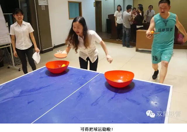 別急(jí)!先來玩玩小遊戲。瞧!捏鼻子 轉大象、定點投乒乓球等遊戲層出不窮。大夥運球之前必須先轉(zhuǎn)上5圈,哎呀!還沒拿起球拍運(yùn)球,就(jiù)暈在乒乓球桌上了!逗得在場觀眾們都捧腹(fù)大笑!