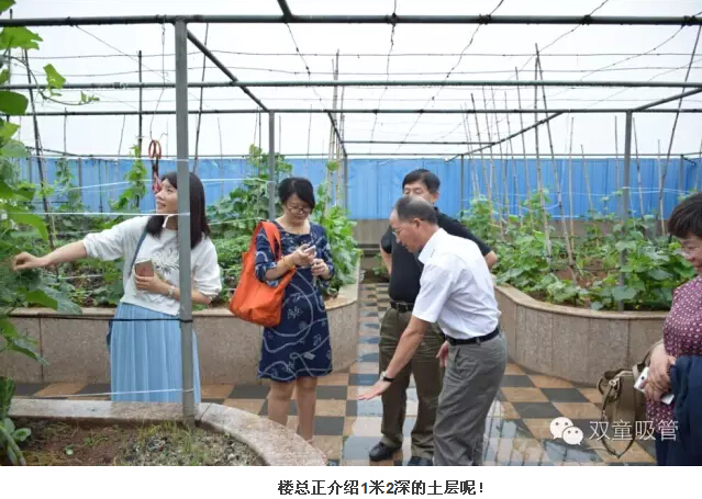 來到屋頂菜園(yuán)時,看到各這麽多新(xīn)鮮的蔬菜瓜果,大家都淡定不起來了呢!當家人樓總向大夥介紹了種植區(qū)1米2深的土層,看到這裏(lǐ)大家紛紛開(kāi)始敬佩(pèi)樓總對工(gōng)廠的設計(jì)。