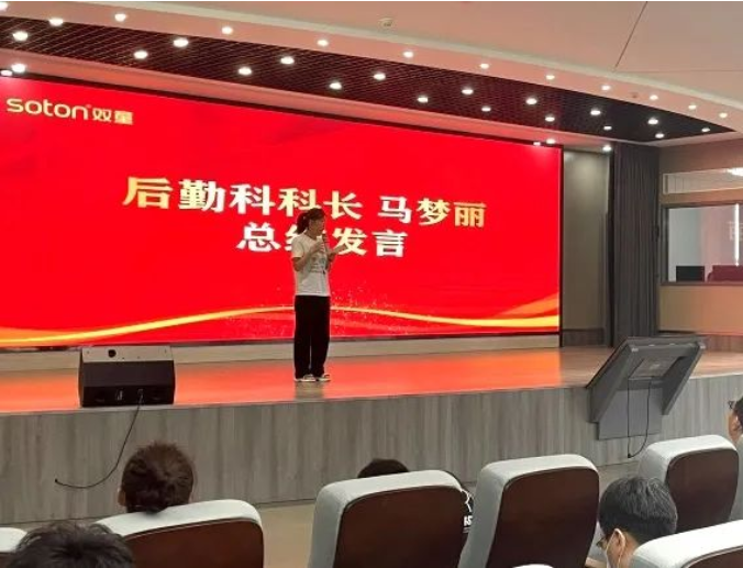 緊接著後勤科科長馬夢麗也對後勤、衛生(shēng)等工作進行宣講,她強調大(dà)家要重視公共區域的衛生情(qíng)況,並提醒暑期員(yuán)工家屬(shǔ)入住(zhù)需要遵守(shǒu)廠區的規章製度,做好垃圾分類,共同維護(hù)公司環境。