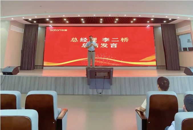 總經理李(lǐ)二橋在員工大(dà)會上發言