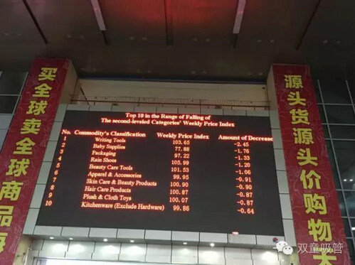 義(yì)烏國際商貿城內進口館內的商品價格指數電子顯(xiǎn)示屏