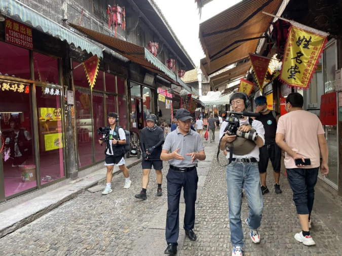 樓仲平在(zài)佛(fó)堂古鎮與攝製組邊走邊聊