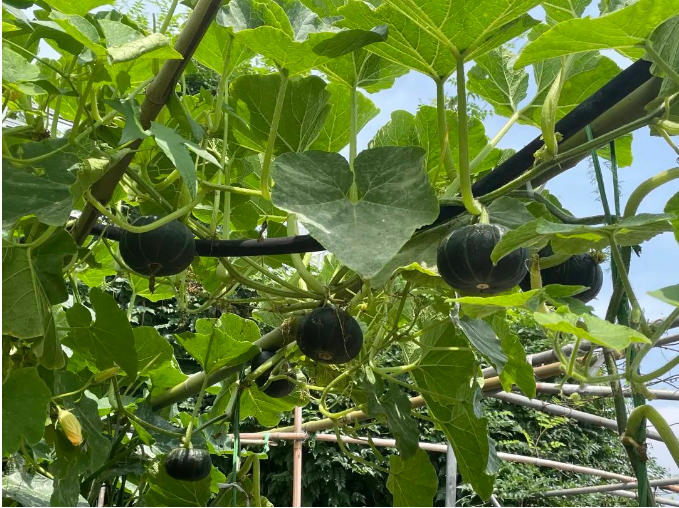 秋季不(bú)愧是收獲的季節(jiē),在園丁叔叔(shū)的辛(xīn)勤栽培下,空中(zhōng)菜園現在可謂是處處都是寶(bǎo)!看,這一大片的冬瓜像是通關遊戲裏的木樁似的(de),想過去這條路(lù)可還真的不容易。這細細的莖條還能掛住這麽(me)大的冬(dōng)瓜,太牛了!