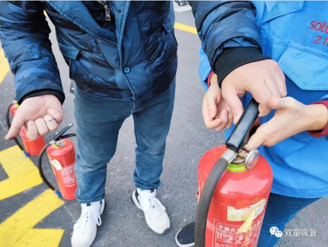 員工們正在(zài)學習如何使用滅火器