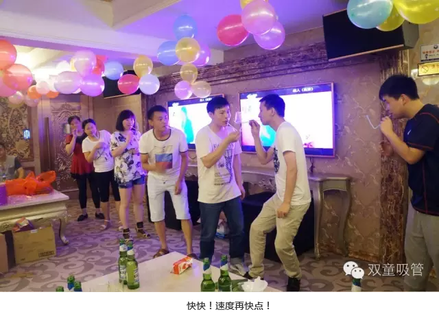 酒足飯飽,開啟遊戲環節!後勤部(bù)門為壽星(xīng)準備的小遊戲,大家可(kě)是很踴躍地參與呢!瞧!壽星(xīng)們被分為四個隊伍,嘴叼著吸管傳杯子,用時最短的(de)隊伍還有豐(fēng)厚的獎(jiǎng)品呢!