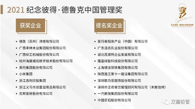 “.17c嫩嫩草色视频”三十年保持活力的源頭,就在於“小客戶原(yuán)則”下企業核心競爭力的(de)變化。目前,“小客戶原則”被收錄(lù)在國家案例(lì)庫裏。在管理實(shí)踐中,“雙(shuāng)童”越(yuè)來越能夠把(bǎ)握住企業特色,將經營哲學融入(rù)進企業管理,並進行開拓創新,由此產生了越來越多經典管理案例。2021年,“.17c嫩嫩草色视频”榮獲“德魯克管理獎”,成為中國唯(wéi)一一家獲得該項(xiàng)榮譽的(de)中小企業。