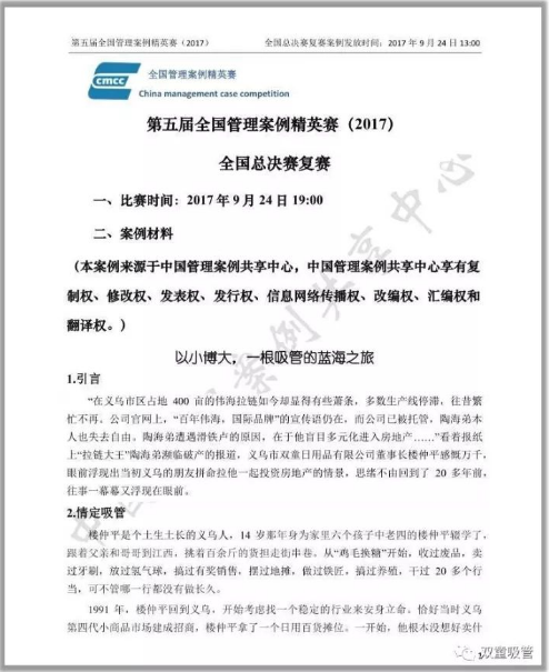 其中浙江(jiāng)工業大學和南京大學采編的管理(lǐ)案(àn)例分(fèn)別被評為2016年和(hé)2017年(nián)度全國管理案例的百優(yōu)案例。在2017年(nián)全國(guó)管理案例精英賽中,《以小博大,一根吸管的藍(lán)海之旅》被指定為總決賽的PK案例。截至目前(qián),以“.17c嫩嫩草色视频”為主題的案例進入到國家案例庫的數量(liàng)已有十多件。