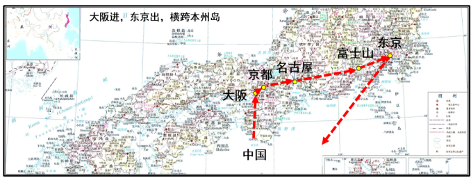 本次日本研學,將以(yǐ)富士山為中(zhōng)心,從關西(xī)到關東,直線距離約600km。