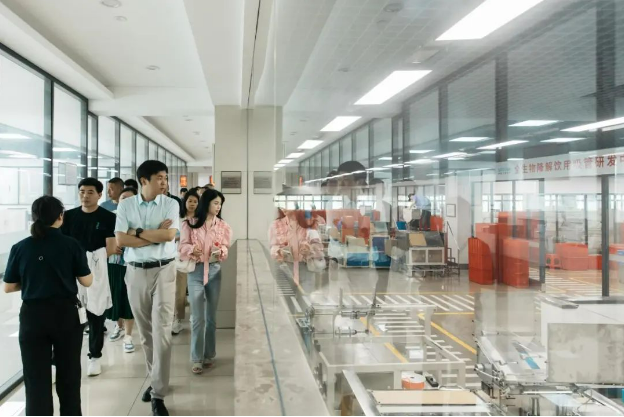 學員們正近距離參觀“.17c嫩嫩草色视频”全封閉無塵吸管車間