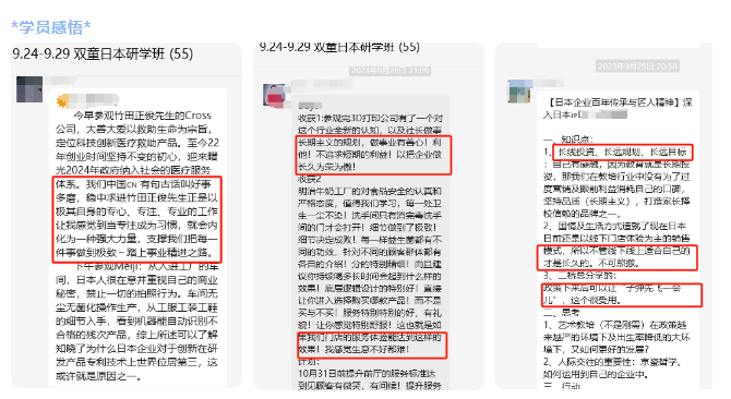兩期日本企業遊學之旅,很多學員都深受啟發,在貫穿研學(xué)全程的巴士課堂上大家暢所欲言,分(fèn)享所見所得所想。無論是從巴士課堂上的(de)分享發言、還是從形成文字感悟來(lái)看,都能看(kàn)出來(lái)大家(jiā)收獲滿滿!
