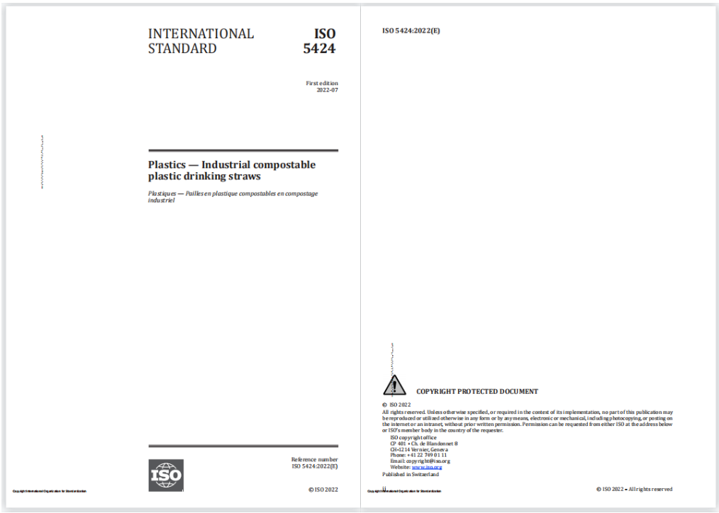 ISO 5424《塑料-工業堆肥塑料吸管》國際標準文件封麵