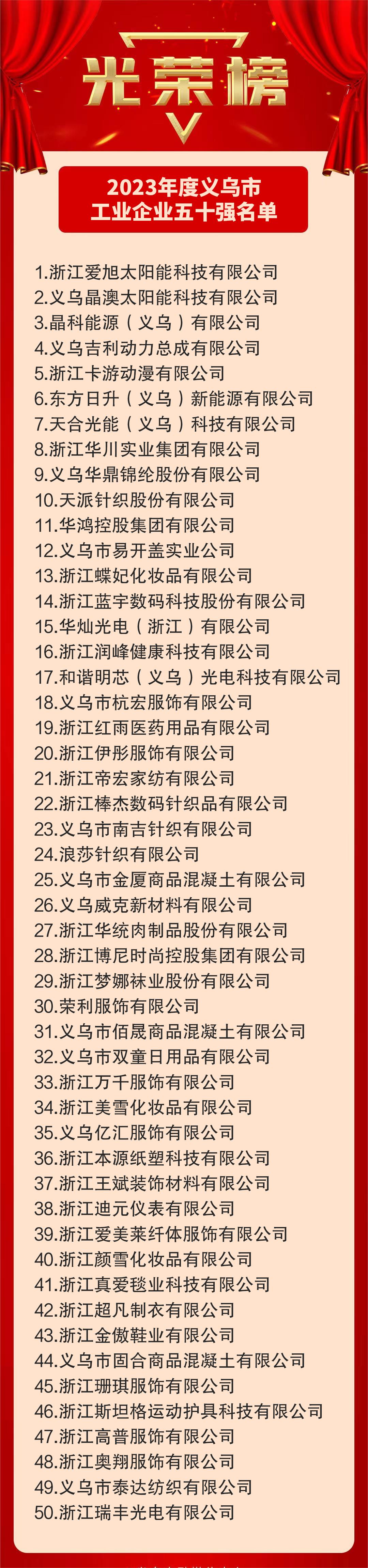 2023年度義烏市工(gōng)業企業五十強名(míng)單