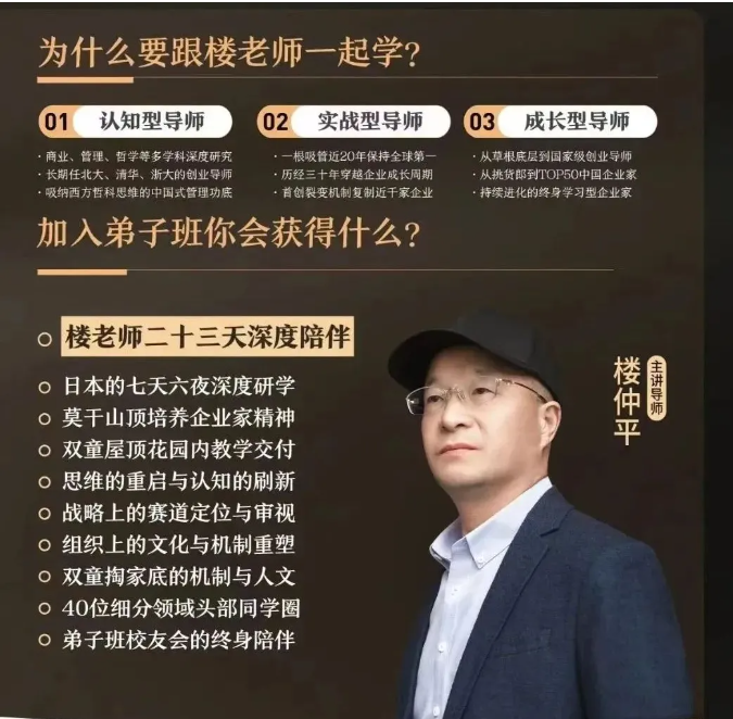 如果你是創業者、學習者、思想(xiǎng)者,希望在經營領域有自己的思考和洞察,那麽樓仲平【弟子班】就是為你量身定製,今(jīn)年最後一期招生,一班隻招40位同學,名額所剩不多,抓緊機會哦!