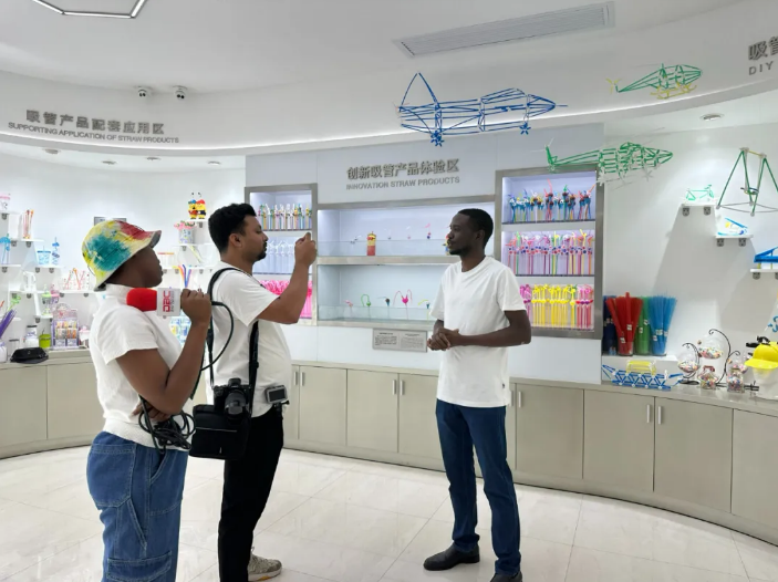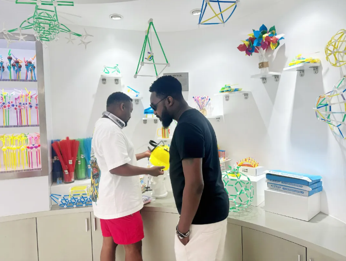 這些琳琅滿目(mù)的吸管和吸(xī)管模型,每一款都(dōu)獨(dú)具匠心,形(xíng)態萬千,引得中外師生連連驚歎,讚(zàn)歎之聲不絕於耳。若非親眼所見,實難想象一根小小的吸管竟能蘊含如此非凡的創造力與(yǔ)想(xiǎng)象力(lì)。他們紛紛感慨,“想把吸管賣到中東去”。