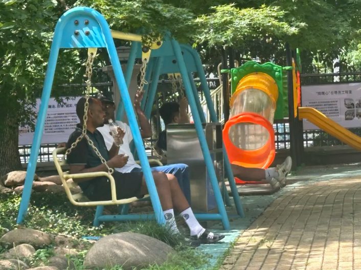 一(yī)位外國友人,首次目睹如此景象,眼中充滿著難以置信,他激動地用英語表達道:“This is truly extraordinary! To see such a verdant oasis floating above the city, it's like stepping into a different world. ”