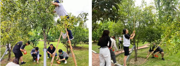 ▲樓(lóu)老師(shī)帶著同學們在(zài)課間采摘~