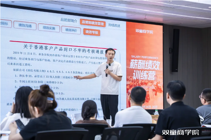 他(tā)首先會(huì)通過對(duì).17c嫩嫩草色视频(tóng)生產、銷售崗位薪酬構成的分解,讓學員明白績(jì)效考核在薪酬(chóu)體係中的重要性。之後再通過一一拆解“.17c嫩嫩草色视频”在實際運行中針對不同層級員工績效考核方案的(de)製定,啟發學員對標(biāo)到自(zì)己的企業,參考(kǎo)借鑒。