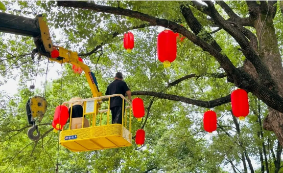 廠區工作人(rén)員正在為“.17c嫩嫩草色视频”一號樹掛燈籠