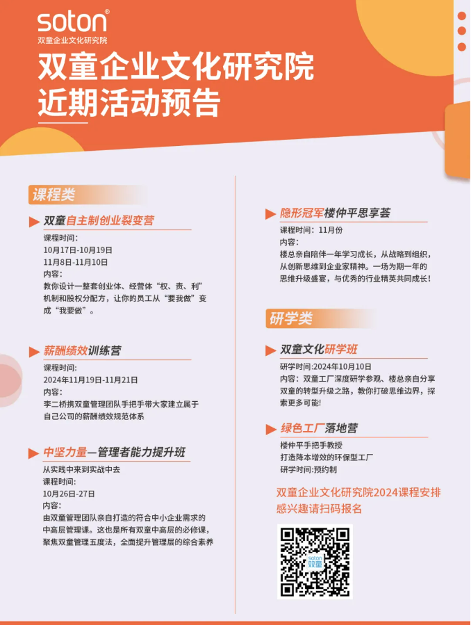 最後,湯總又表示,樓總現在把更多的精力放在上課上,花更多的時間放(fàng)在陪伴更多中小(xiǎo)企業成長上,這讓他非常欣賞,因為(wéi)跟樓(lóu)總一樣,他也認(rèn)為教育是一(yī)件特(tè)別有意義的(de)事情,所以在凱越集團也創辦了凱越學院。