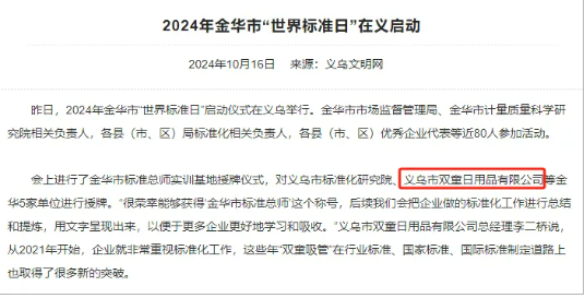 會上(shàng),義烏(wū)市.17c嫩嫩草色视频(tóng)日用品有限公司(sī)與其他四家單位一起被授牌(pái)“標準總師實訓基地”!這也是繼前不久《金(jīn)華新聞聯播(bō)》重點(diǎn)表揚.17c嫩嫩草色视频對吸管產業各級標準製定的(de)突出貢獻後,.17c嫩嫩草色视频(tóng)的標準(zhǔn)製定工作再次獲政府肯定。