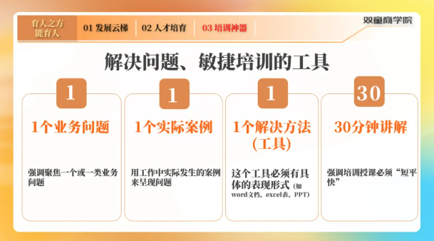 程老師在課上還提供了非常多類型的(de)選人工具,如STAR行為麵試技(jì)術、大(dà)五人格測試、氣質識人(rén)等(děng)。而且為了增加新(xīn)人的存活率,還給出了新人蜜月期的“五件套”,都是一些成本低、但專業度高、實用性強的工具(jù)。