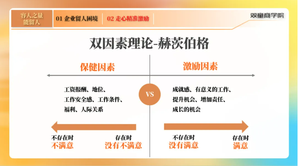 課上,程老師客觀、詳細地分析了中小企業的留(liú)人困境,而管理者有義務為企業留住優秀人才。所以(yǐ)這就(jiù)需要企業管理者掌握一定的專(zhuān)業技巧來留住員(yuán)工,除了薪資待遇等保健(jiàn)因素外(wài),管(guǎn)理者可以通過(guò)鼓勵、讚美、儀式、欣賞、成長機會和關注度等來精準激勵員工,減少員工流失率。